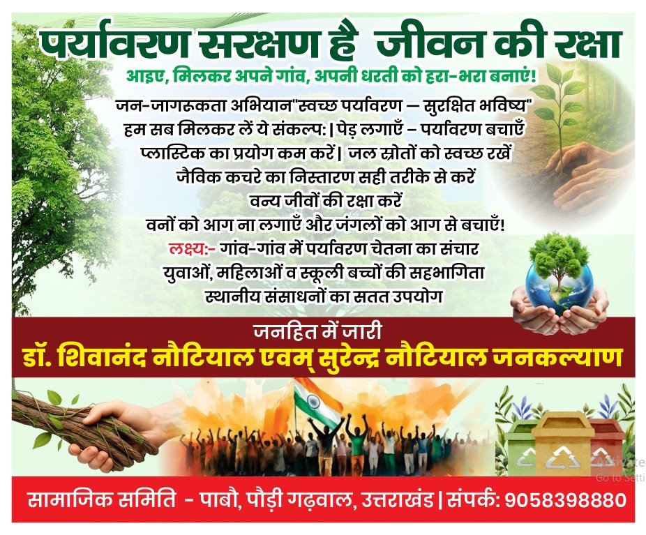 पौड़ी गढ़वाल में शिवानंद नौटियाल एवं सुरेंद्र नौटियाल जनकल्याण सामाजिक समिति की पर्यावरण संरक्षण पहल; महिलाएं, युवा और बुजुर्ग हुए शामिल
