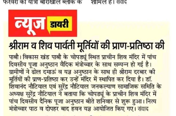 डॉ. शिवानंद नौटियाल एवं सुरेंद्र नौटियाल जनकल्याण सामाजिक समिति पाबौ पौड़ी गढ़वाल द्वारा लाटू देवता मंदिर में सफाई अभियान संपन्न