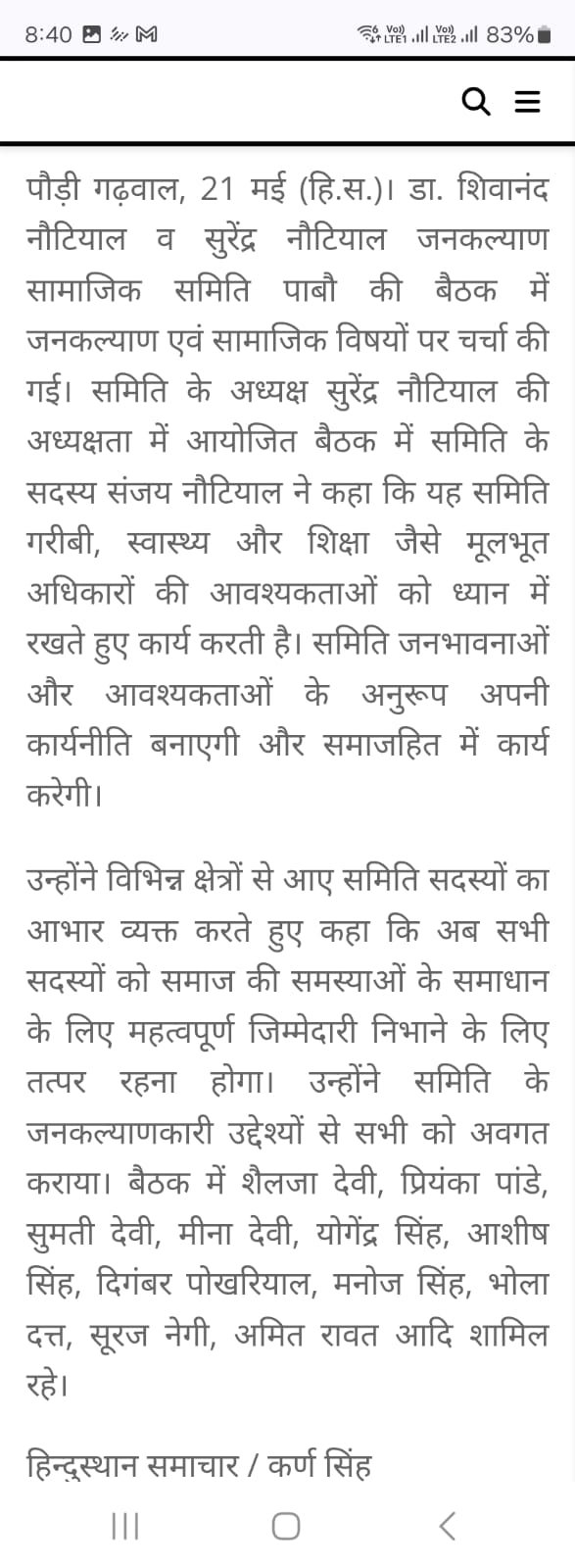 डॉ. शिवानंद नौटियाल एवं सुरेंद्र नौटियाल जनकल्याण सामाजिक समिति की बैठक संपन्न गरीबी, स्वास्थ्य व शिक्षा के मुद्दों पर होगा कार्य