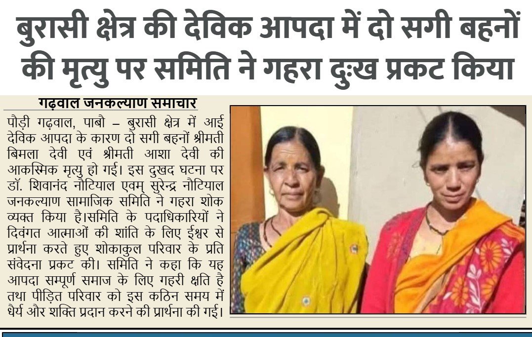 डॉ शिवानन्द नौटियाल एवं सुरेन्द्र नौटियाल जनकल्याण सामाजिक समिति जिला पौड़ी के अंतर्गत समय समय पर जनकल्याण कार्य करवा रही है