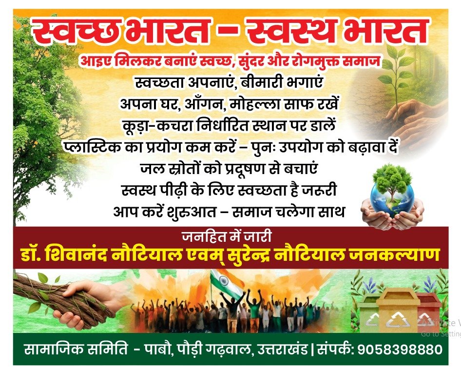 डॉ. शिवानंद नौटियाल एवं सुरेंद्र नौटियाल जनकल्याण सामाजिक समिति पाबौ की पहल पर सफाई एवं वृक्षारोपण कार्यक्रम संपन्न