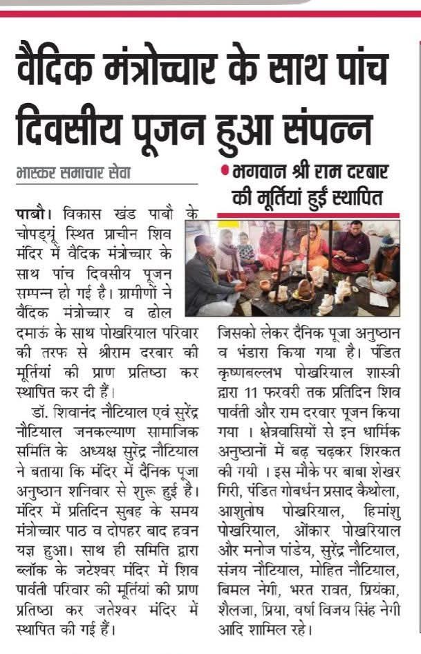 डॉ. शिवानंद नौटियाल एवं सुरेंद्र नौटियाल जनकल्याण सामाजिक समिति पाबौ पौड़ी गढ़वाल द्वारा लाटू देवता मंदिर में सफाई अभियान संपन्न